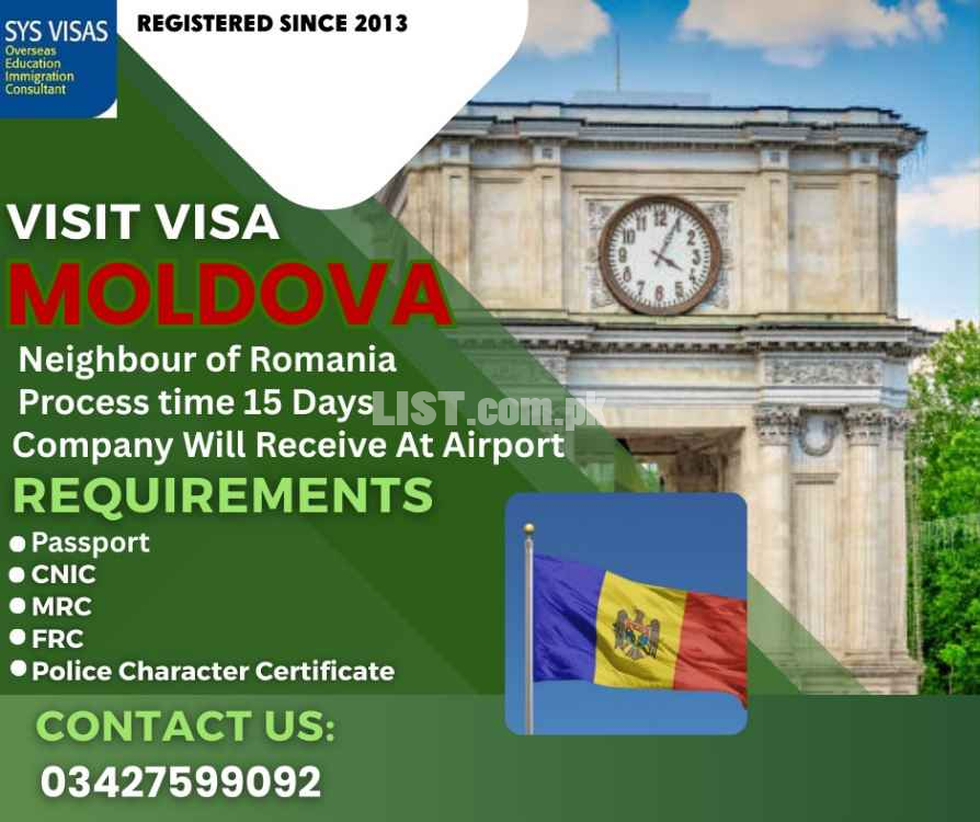 Visit Visa in Moldova services are available in Pakistan at affordable price.